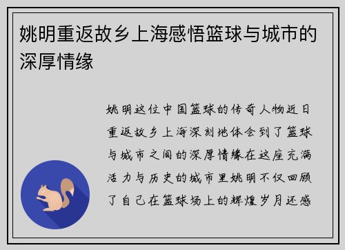 姚明,作为中国篮球的象征,一位享誉全球的体育明星,他的传奇人生与篮球梦想交织在一起,构成了一幅动人的画卷。生于上海的姚明,从小就展现出惊人的身高和篮球天赋。他不仅在国内取得了骄人的成绩,还成功登陆NBA,成为第一位被选中进入NBA的中国球员。在这条追逐梦想的道路上,他不仅面临着巨大的压力与挑战,也收获了无数荣誉与友谊。姚明以其卓越的球技和不懈努力,改变了人们对中国篮球的认知,同时也为后来的年轻球员...