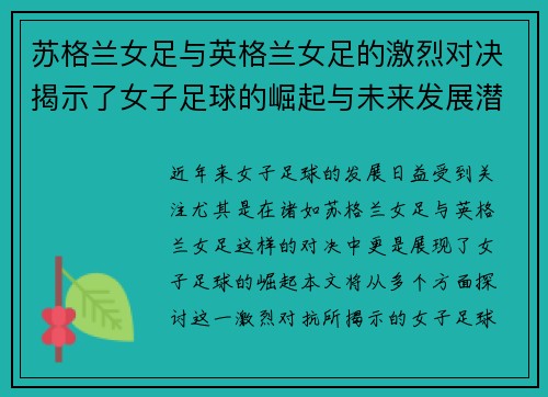 在当今足球世界中,女子足球的发展势头不可小觑,越来越多的女性运动员崭露头角,其中一些甚至被誉为“世纪最强女子足球明星”。本文将对这些传奇女性的崛起之路进行深入探讨,从她们的成长背景、职业生涯、技术特点以及对女子足球运动的影响等多个方面进行分析。通过这些内容,我们不仅能够更好地理解她们个人成就背后的故事,还能感受到女子足球在全球范围内日益增长的重要性与影响力。这些球员用自己的努力与才华,为未来的年轻...